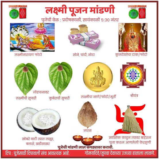 - फळ, पाच प्रकारचा फराळ, गोडा नैवेद्य ठेवणे – याने लक्ष्मी प्रसन्न होते.